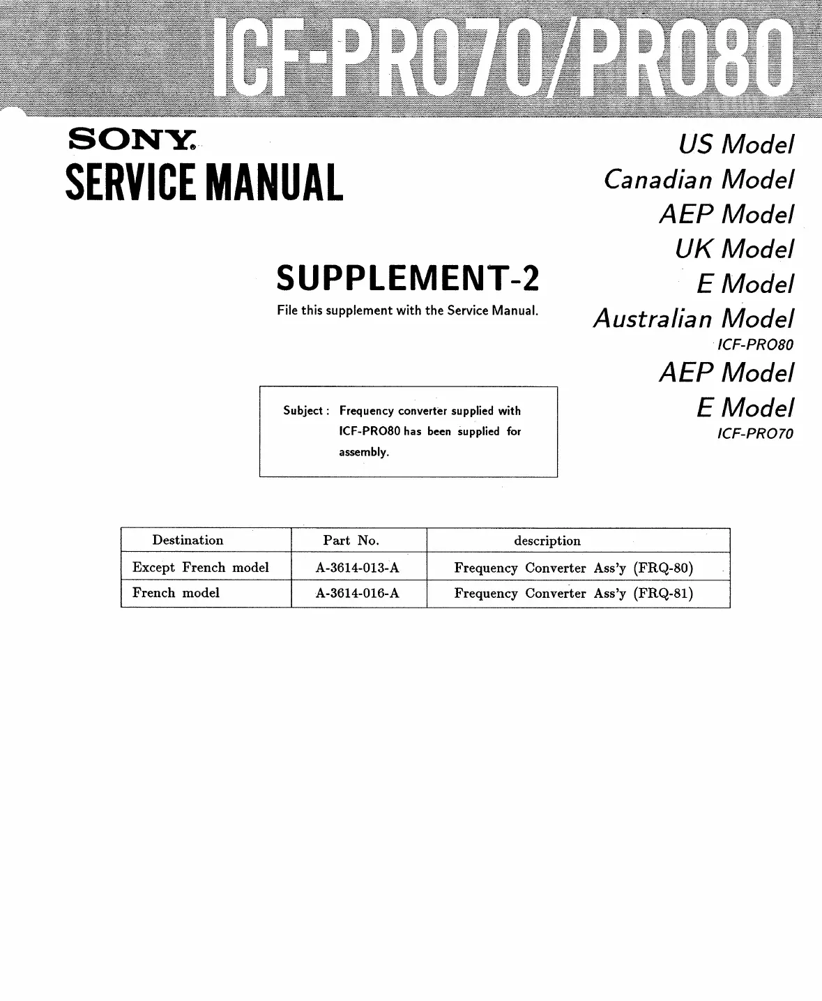 Sony ICF-PRO70 - Frequency Converter Supply Information