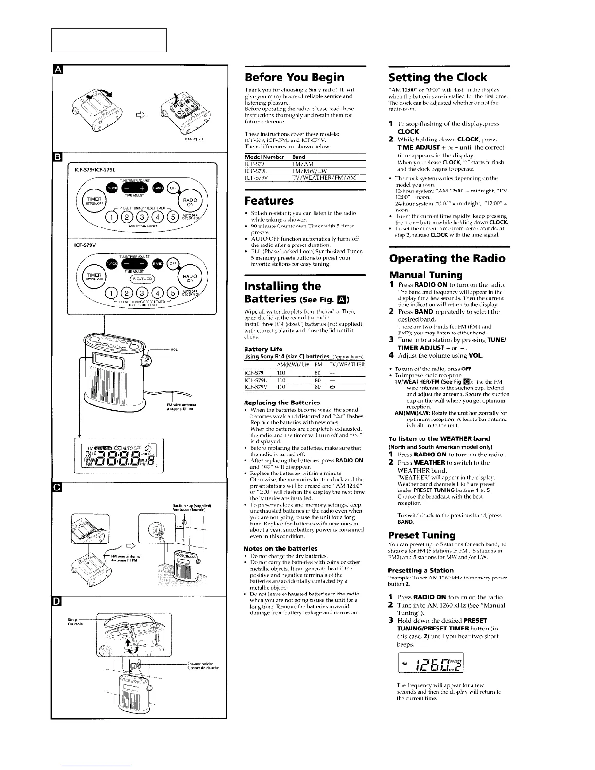 Sony ICF-S79 - General Section; Before You Begin; Key Features; Installing the Batteries