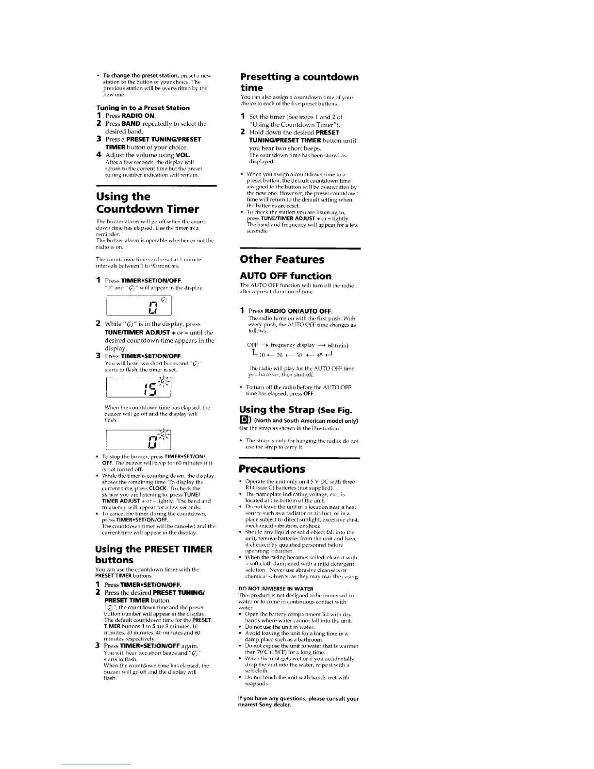Sony ICF-S79 - Countdown Timer; Using Preset Timer Buttons; Presetting a Countdown Time; Other Features