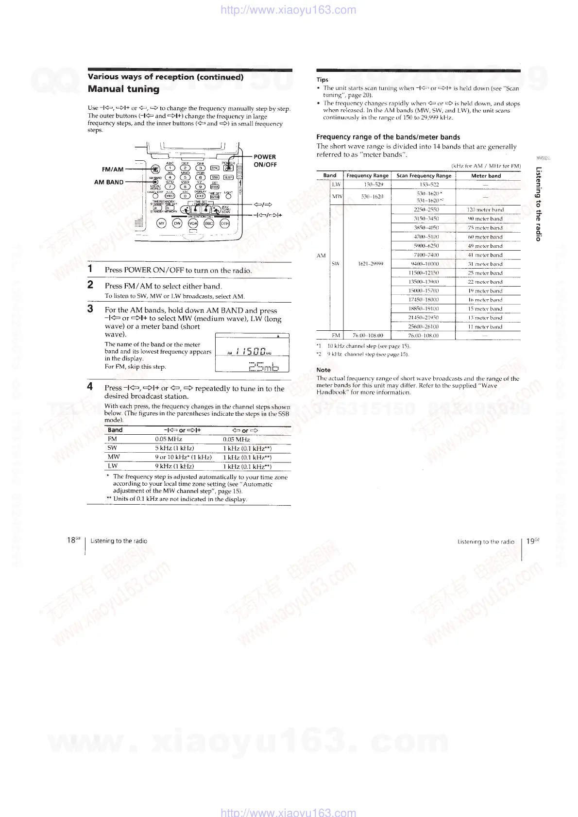 Sony ICF-SW07 - Manual Tuning and Frequency Ranges; Manual Tuning Procedure