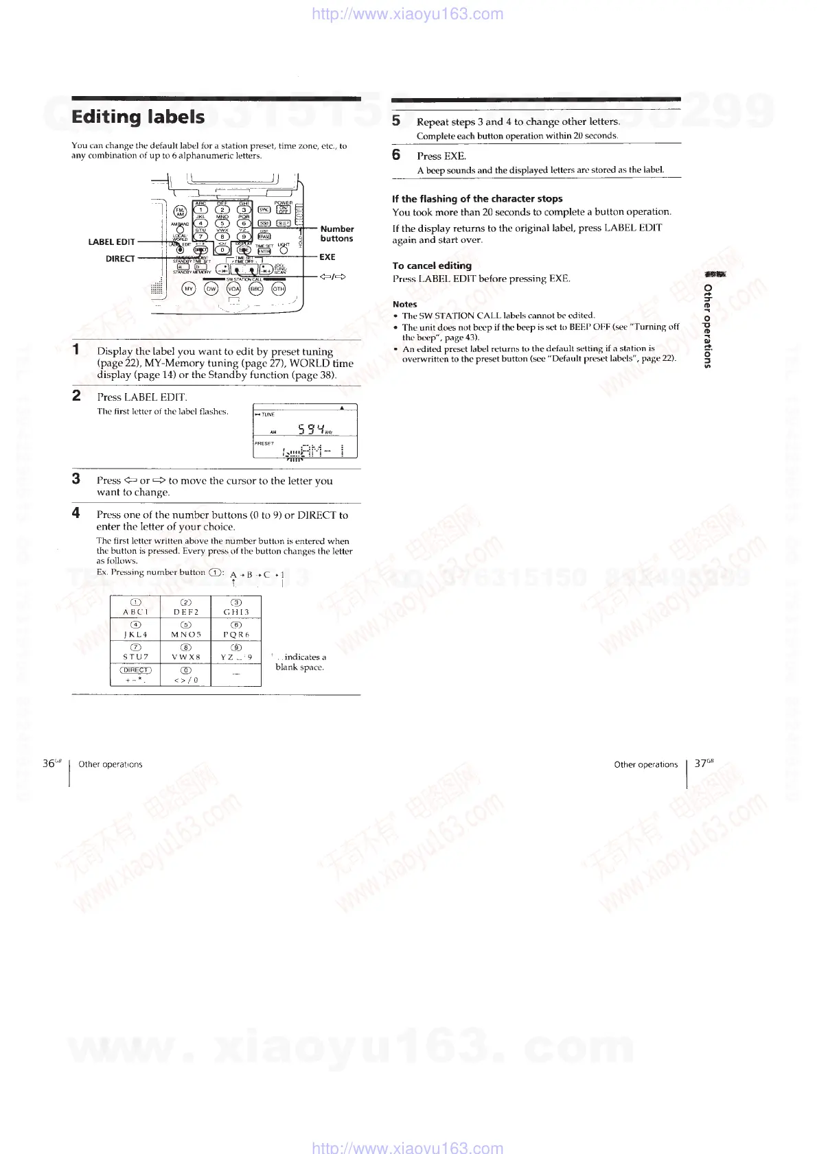 Sony ICF-SW07 - Editing Labels for Presets and Settings; Editing Labels Procedure