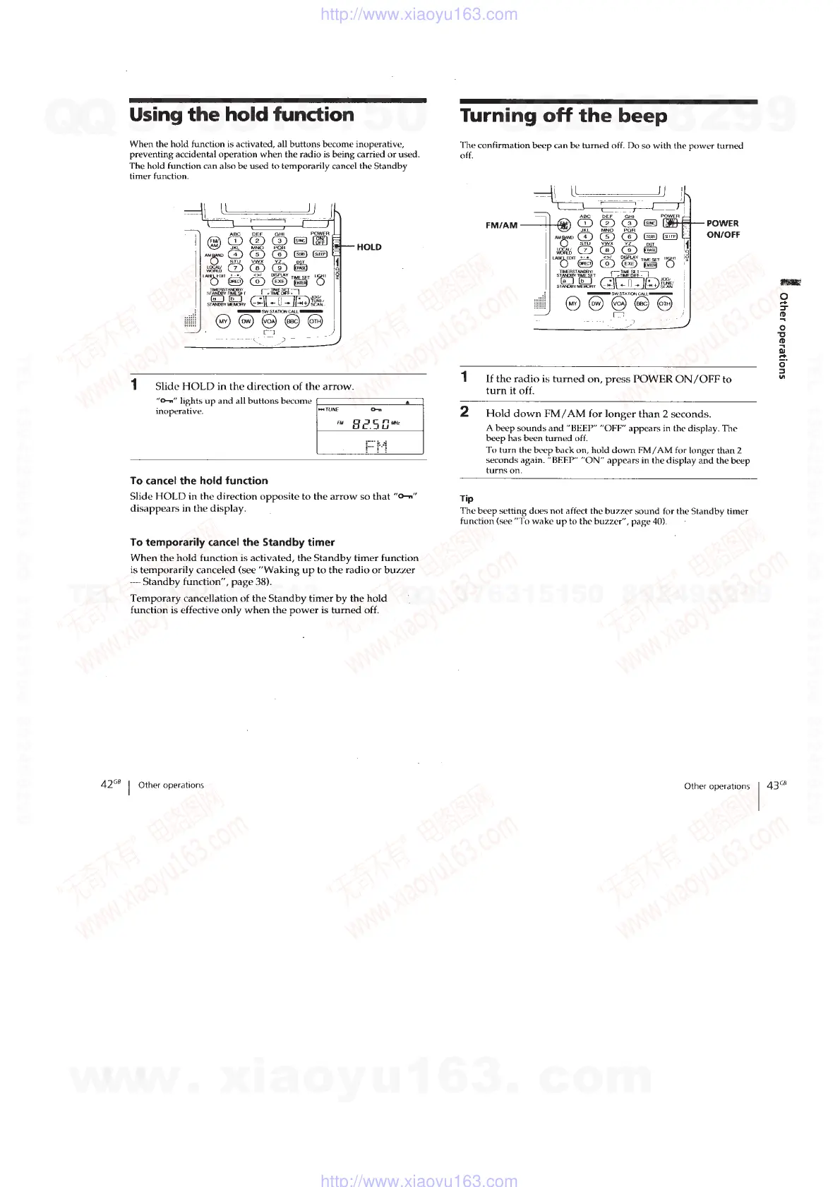 Sony ICF-SW07 - Using the Hold Function; Hold Function Operation; Canceling the Hold Function; Temporarily Canceling Standby Timer