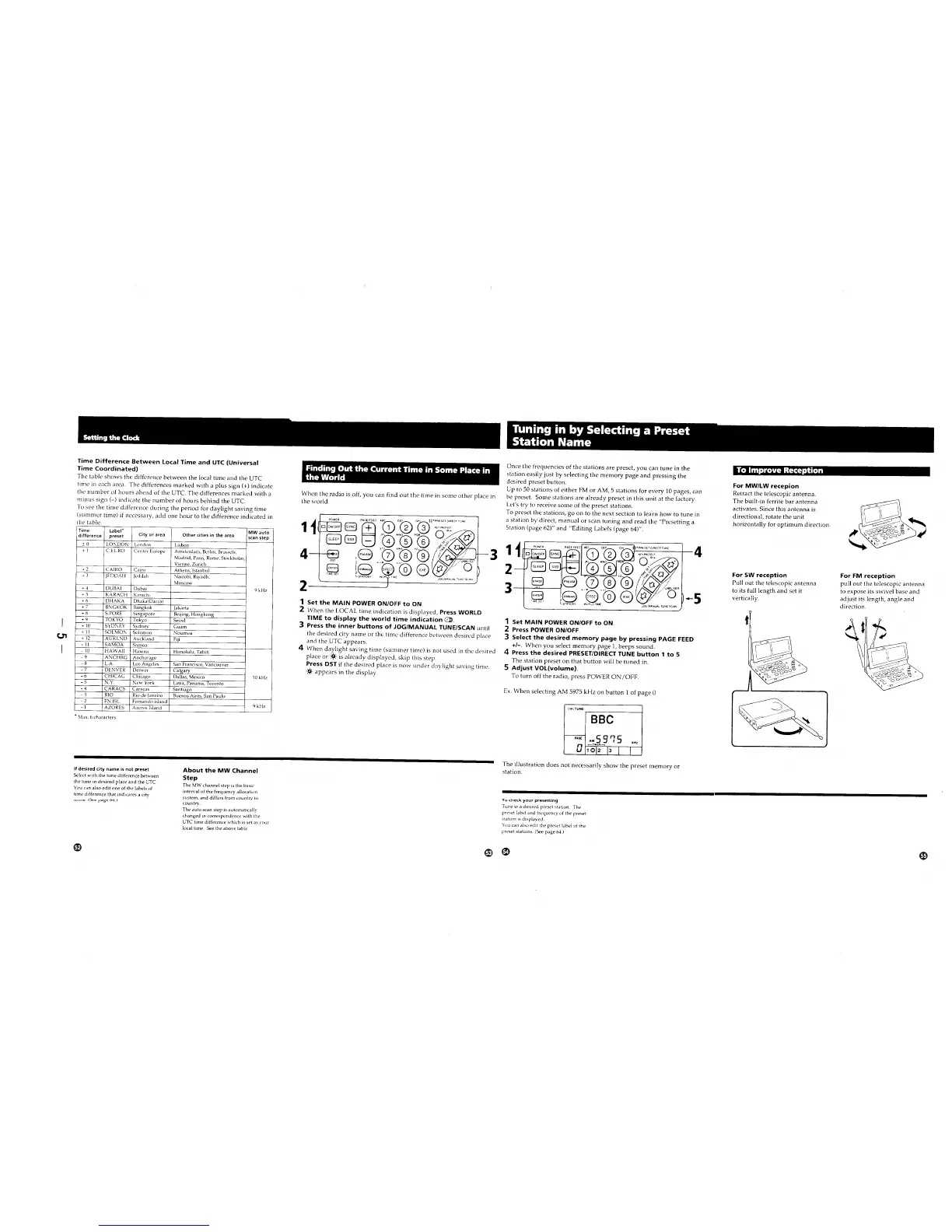 Sony ICF-SW100 - Clock and Time Features; Time Difference Information; Finding Out Current Time; Tuning by Preset Station Name