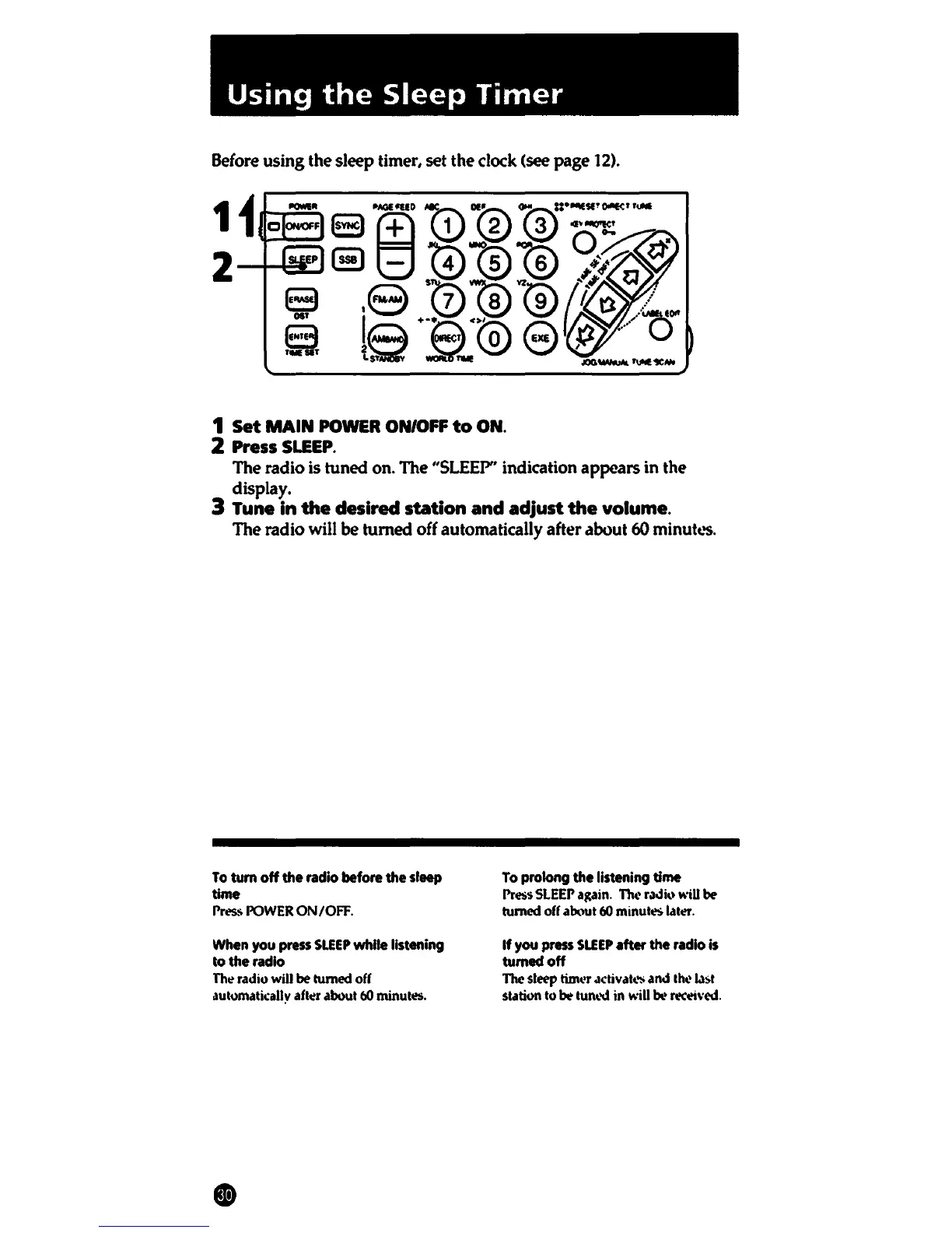 Sony ICF-SW1005 - Sleep Timer Operation; Using the Sleep Timer