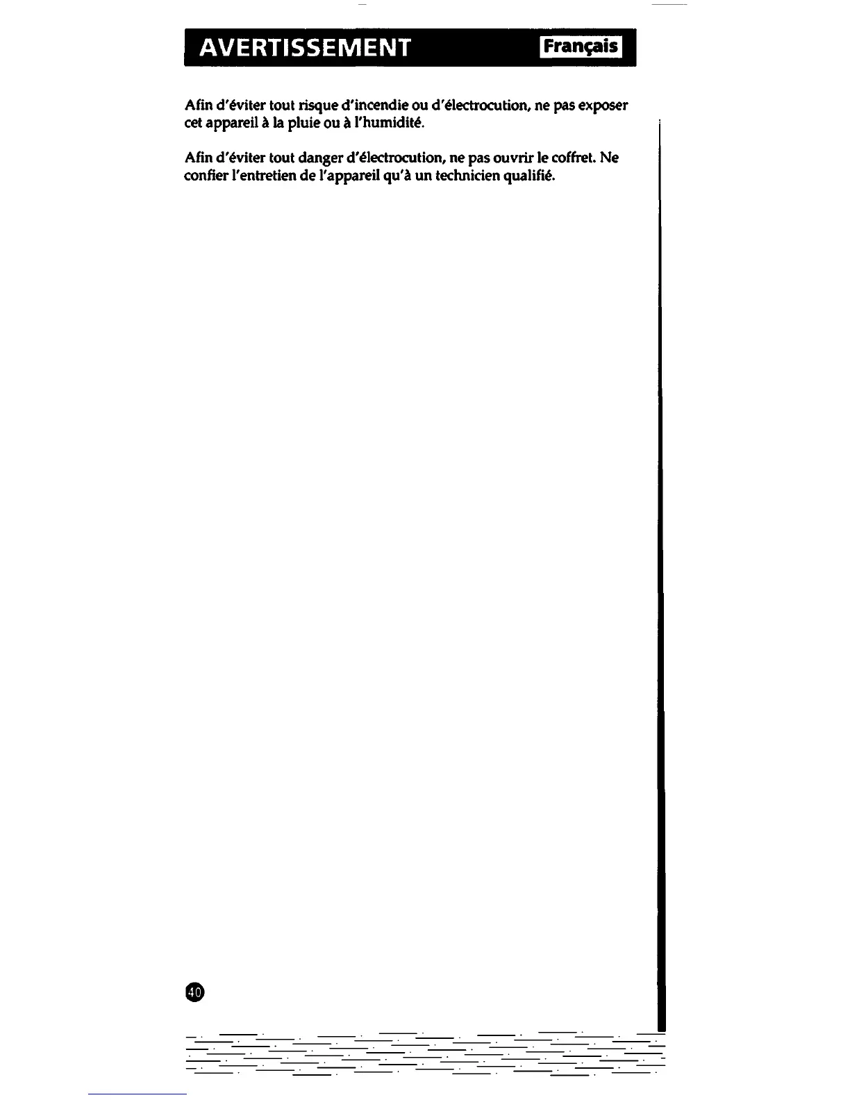d'electrocution, ne pas ouvrir le coffret. Ne