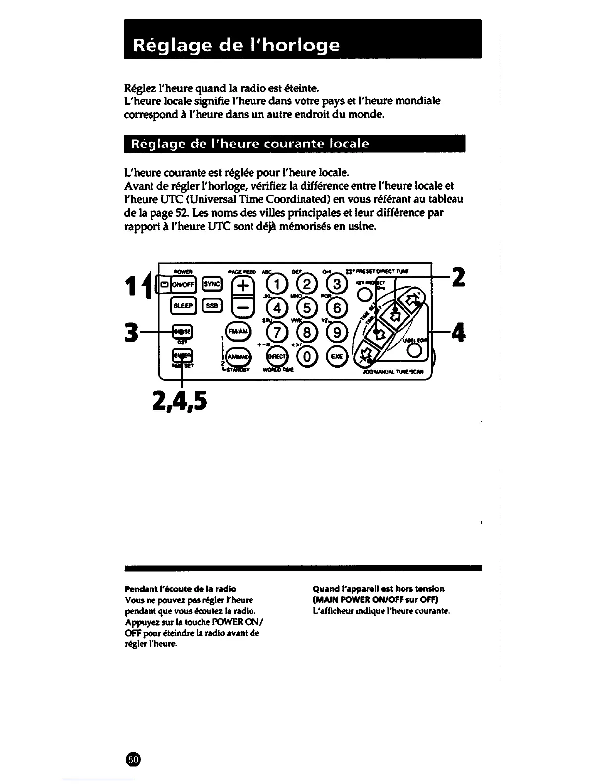 Avant de regler l'horloge, verifiez la difference entre l'heure