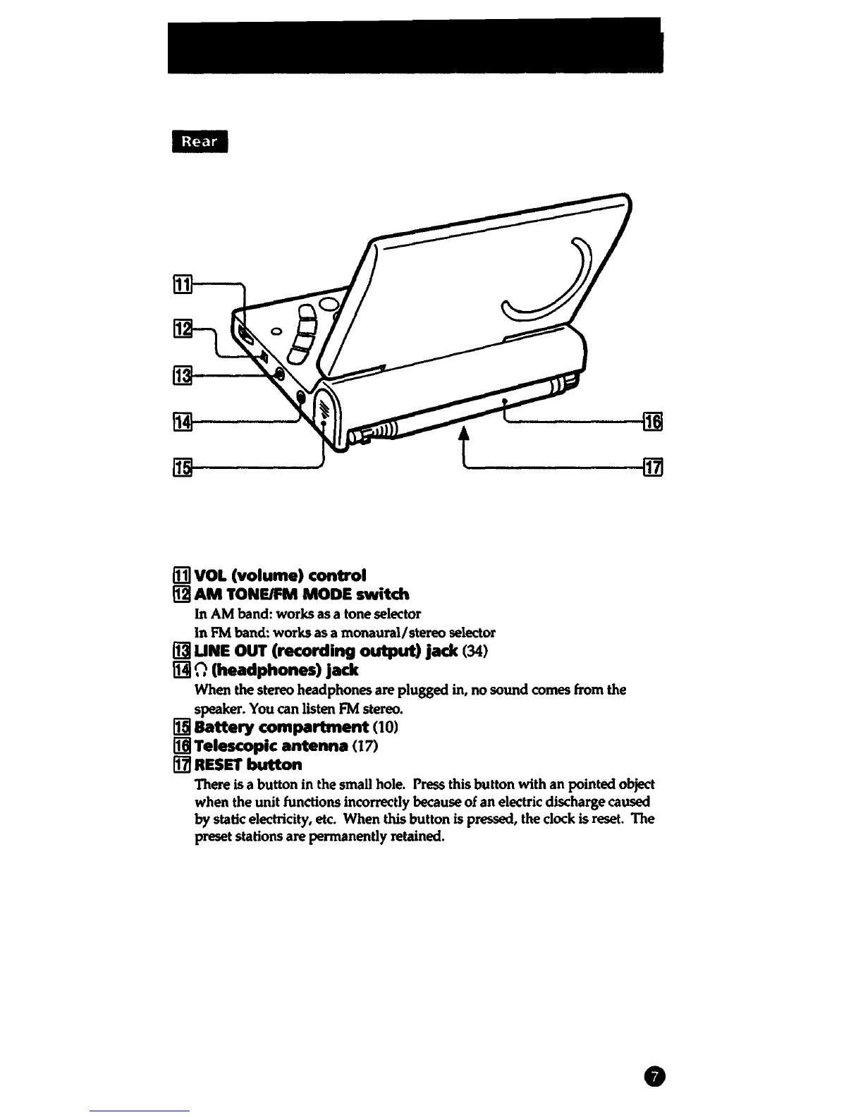 static electricity, etc. When this button is pressed, the clock is reset.