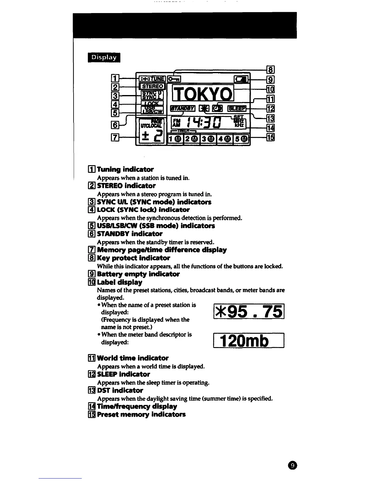 the preset stations, cities, broadcast bands,