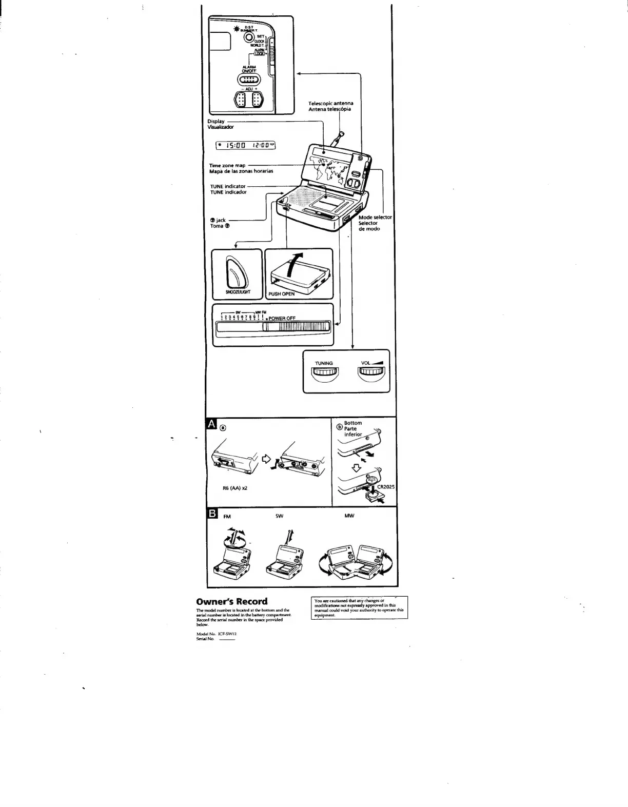 Sony ICF-SW12 - Owners Record