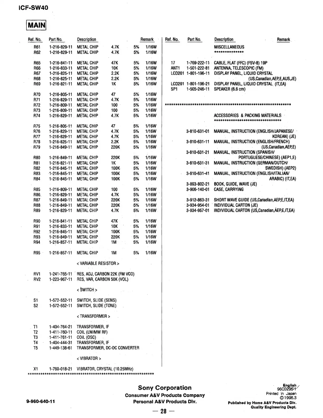 Sony ICF-SW40 - EXPLODED VIEW -Vsscssseseseseesceseees Sesdseutdevasoosderesee