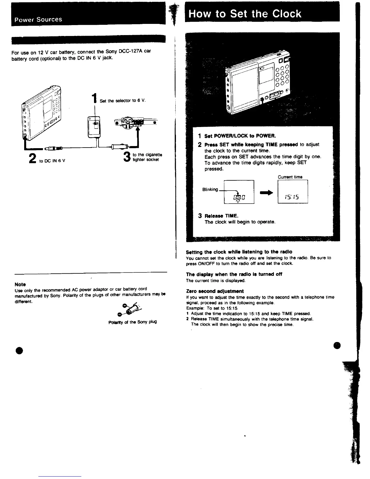 Sony ICF-SW7600 Primary - How to Set the Clock; Zero Second Adjustment