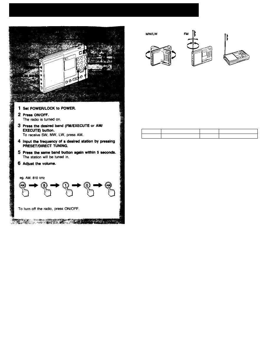 The frequencies which this radio receives are allocated in the following
