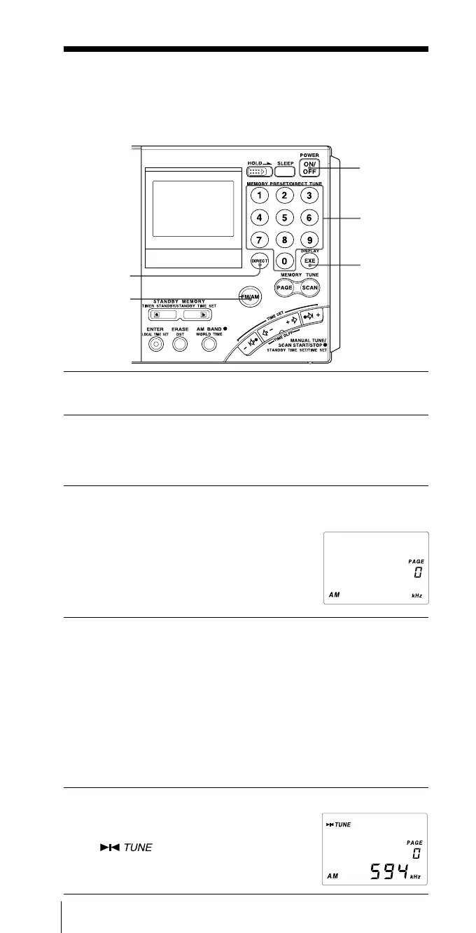 Например: Для ввода значения 810 кГц нажмите кнопки 8, 1 и 0.