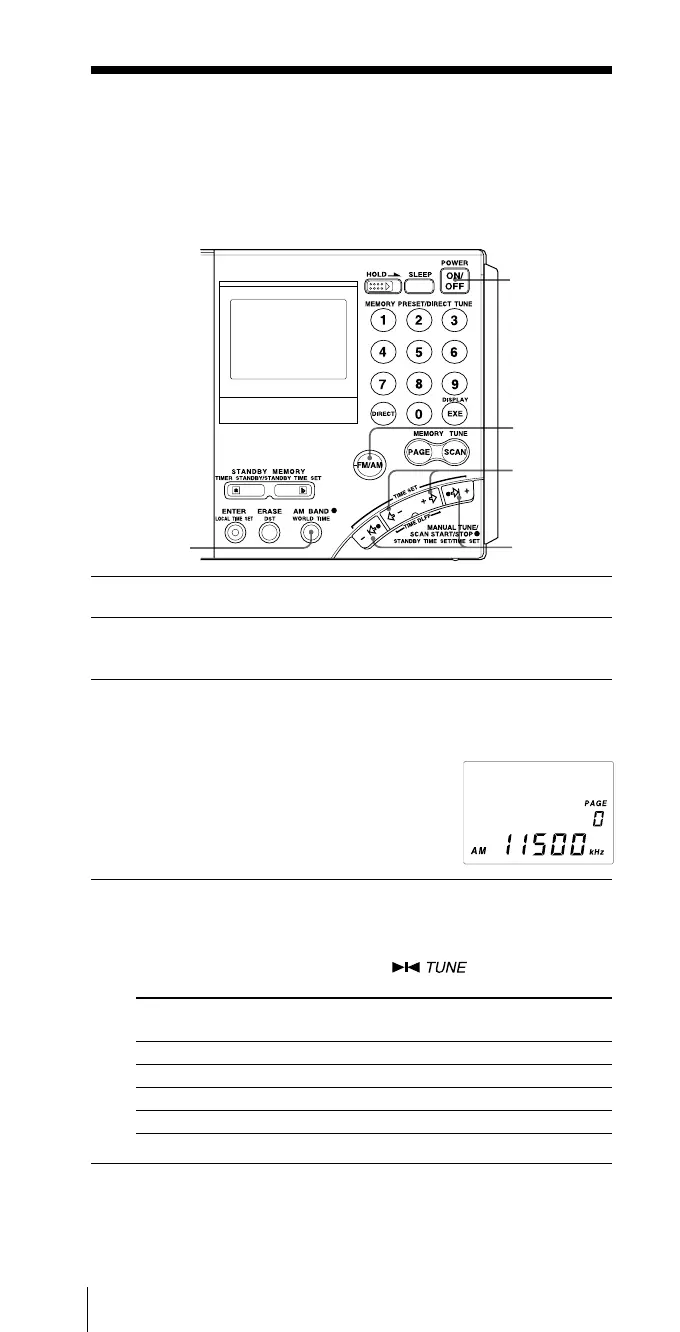 3 For AM bands, hold down AM BAND and press