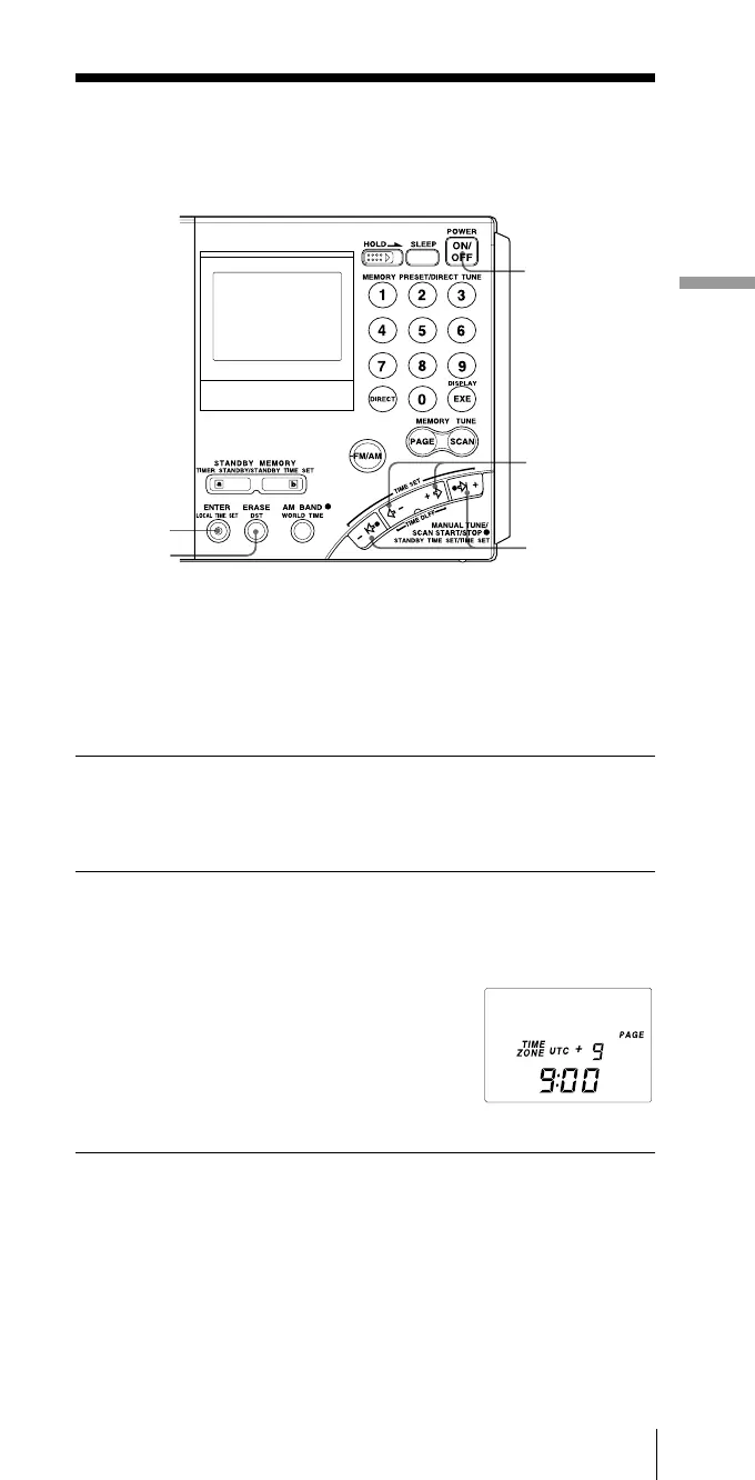 Indikeringen TIME ZONE visas i teckenfönstret. Vid varje tryck på