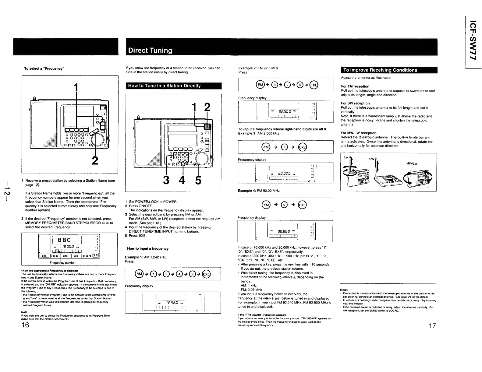 Sony ICF-SW77 - Direct Tuning Procedures; How to Tune In a Station Directly; To Improve Receiving Conditions