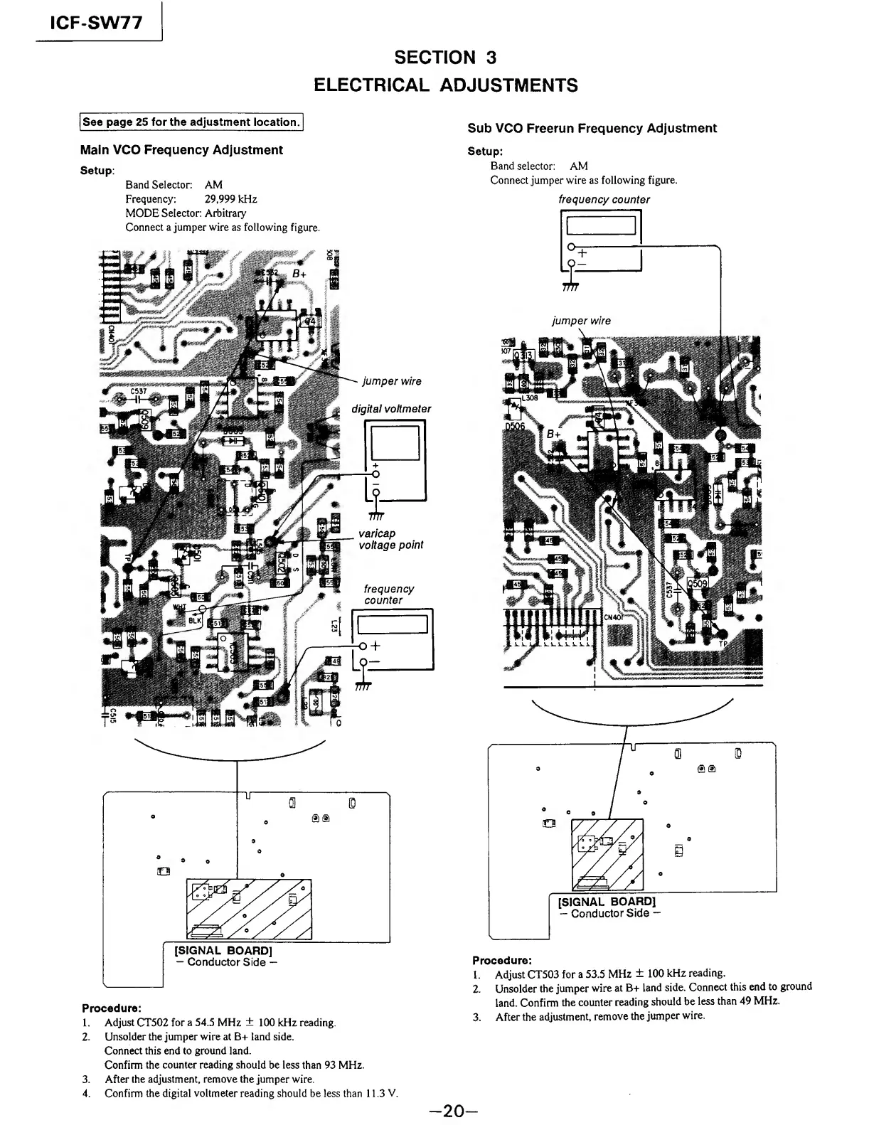 Sony ICF-SW77 - ELECTRICAL ADJUSTMENTS; Main VCO Frequency Adjustment; Sub VCO Freerun Frequency Adjustment
