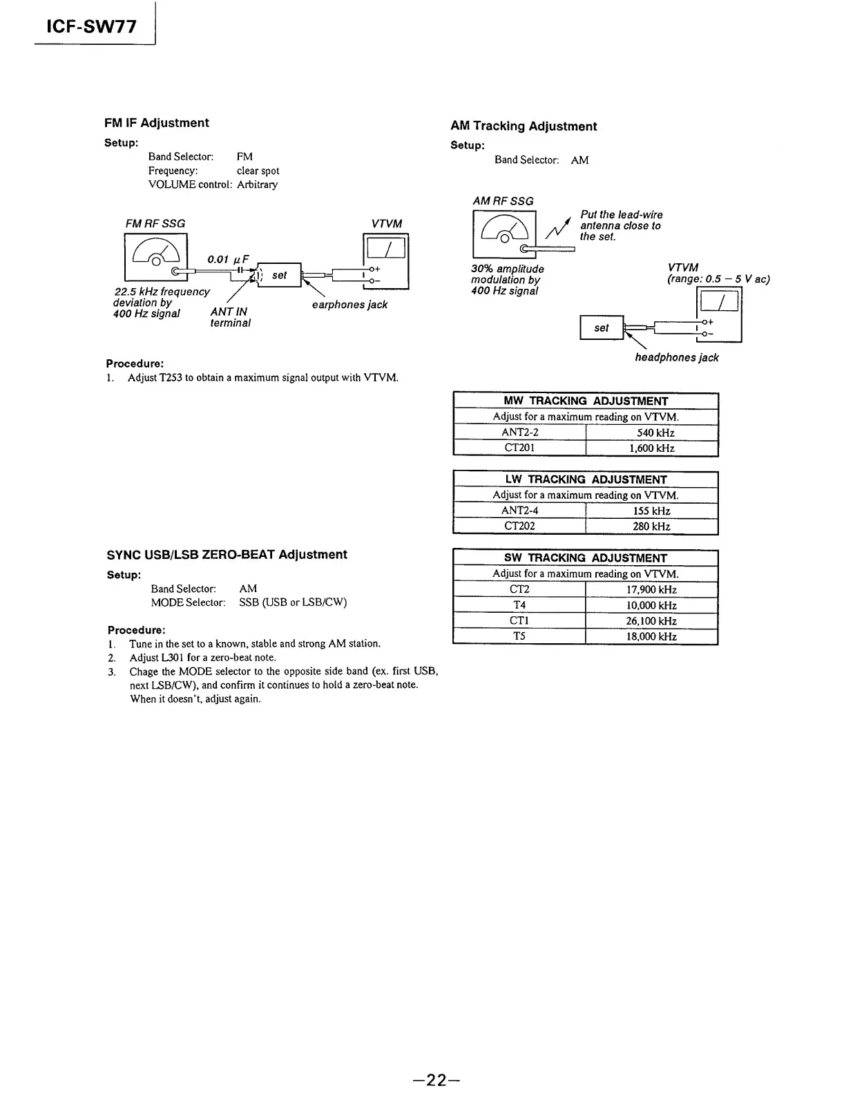 Sony ICF-SW77 - FM IF Adjustment; AM Tracking Adjustment; SYNC USB;LSB ZERO-BEAT Adjustment