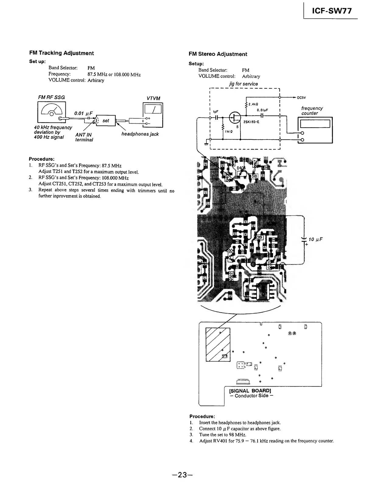 Sony ICF-SW77 - FM Tracking Adjustment; FM Stereo Adjustment
