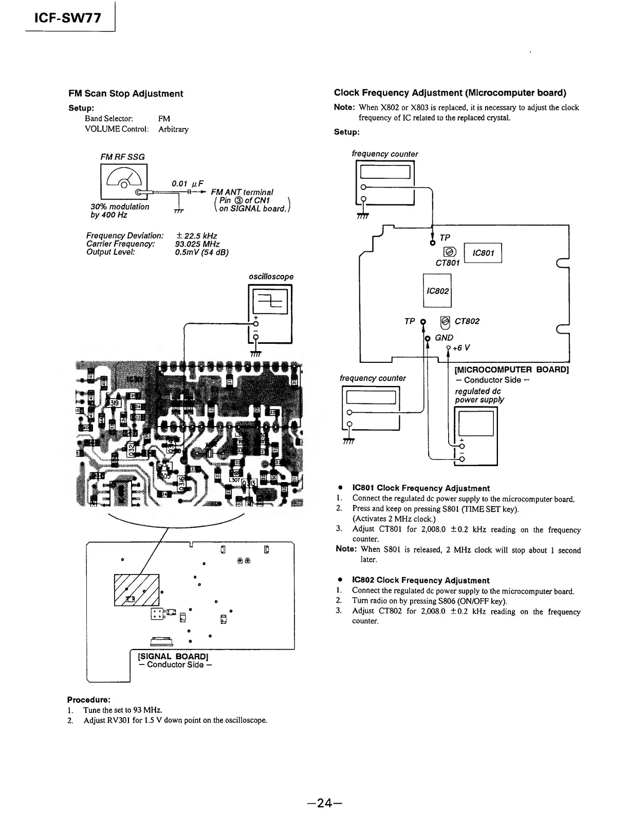 Sony ICF-SW77 - FM Scan Stop Adjustment; Clock Frequency Adjustment (Microcomputer board)