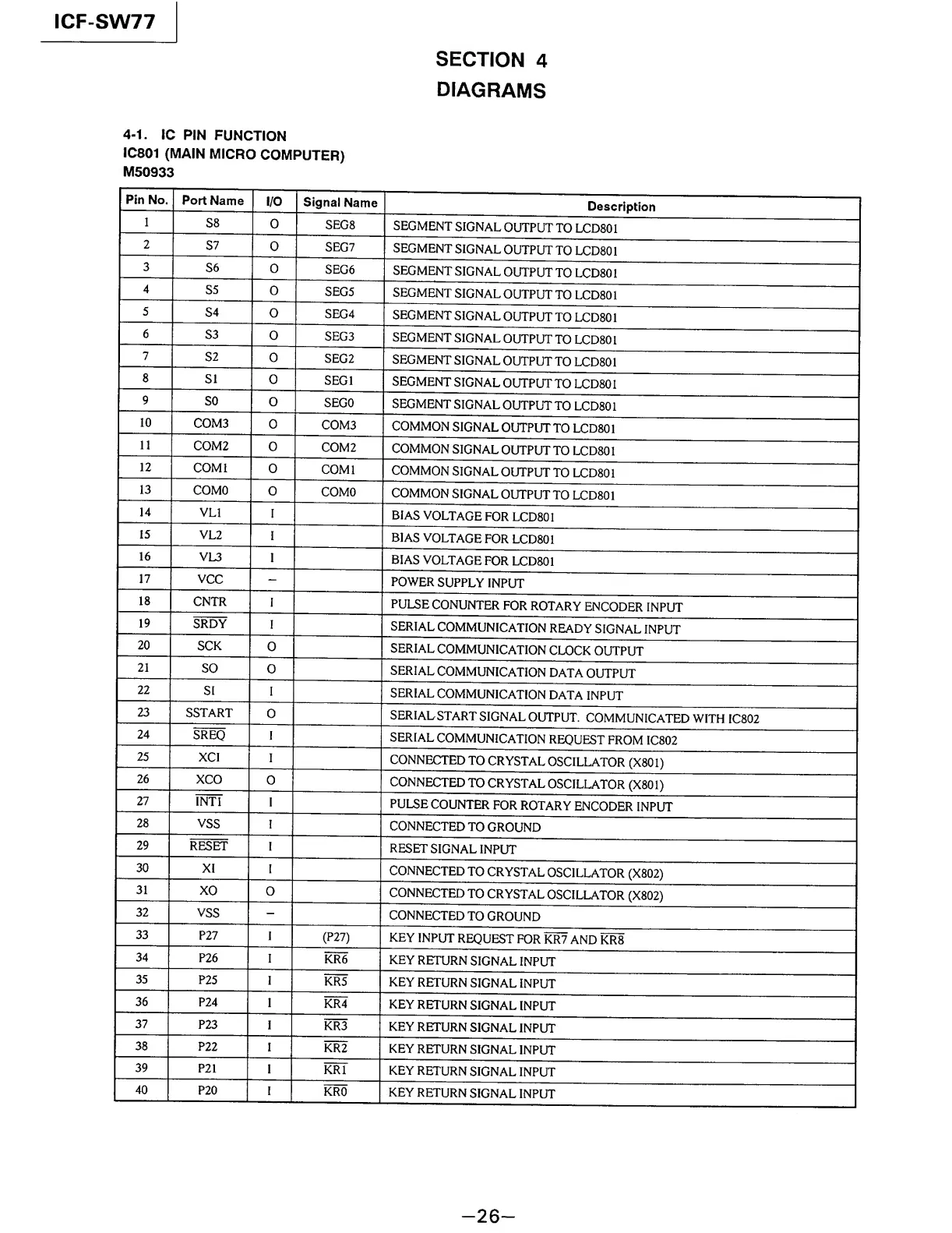 Sony ICF-SW77 - DIAGRAMS; IC Pin Function; Block Diagram; Microcomputer Section