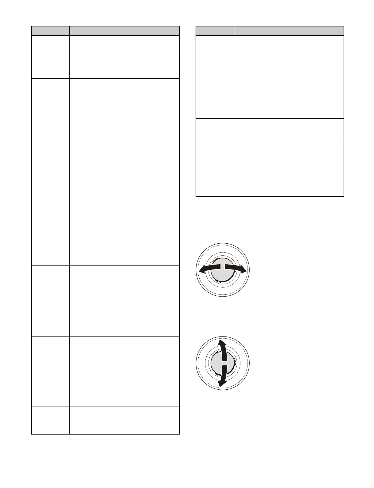 Parameter values increase as you turn clockwise, and