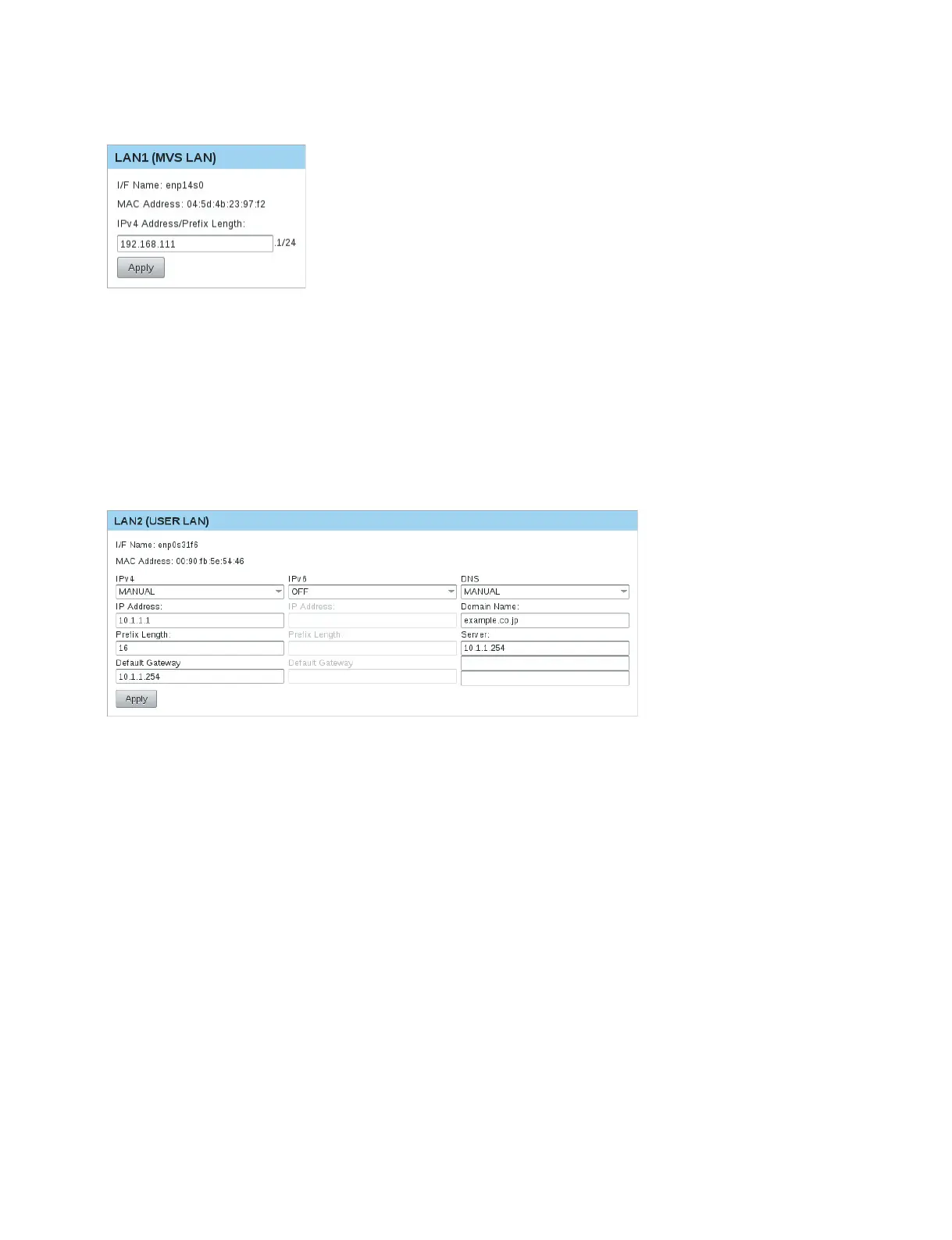 . MANUAL: Manual setting mode. IP Address, Prefix Length, and Default Gateway can be entered