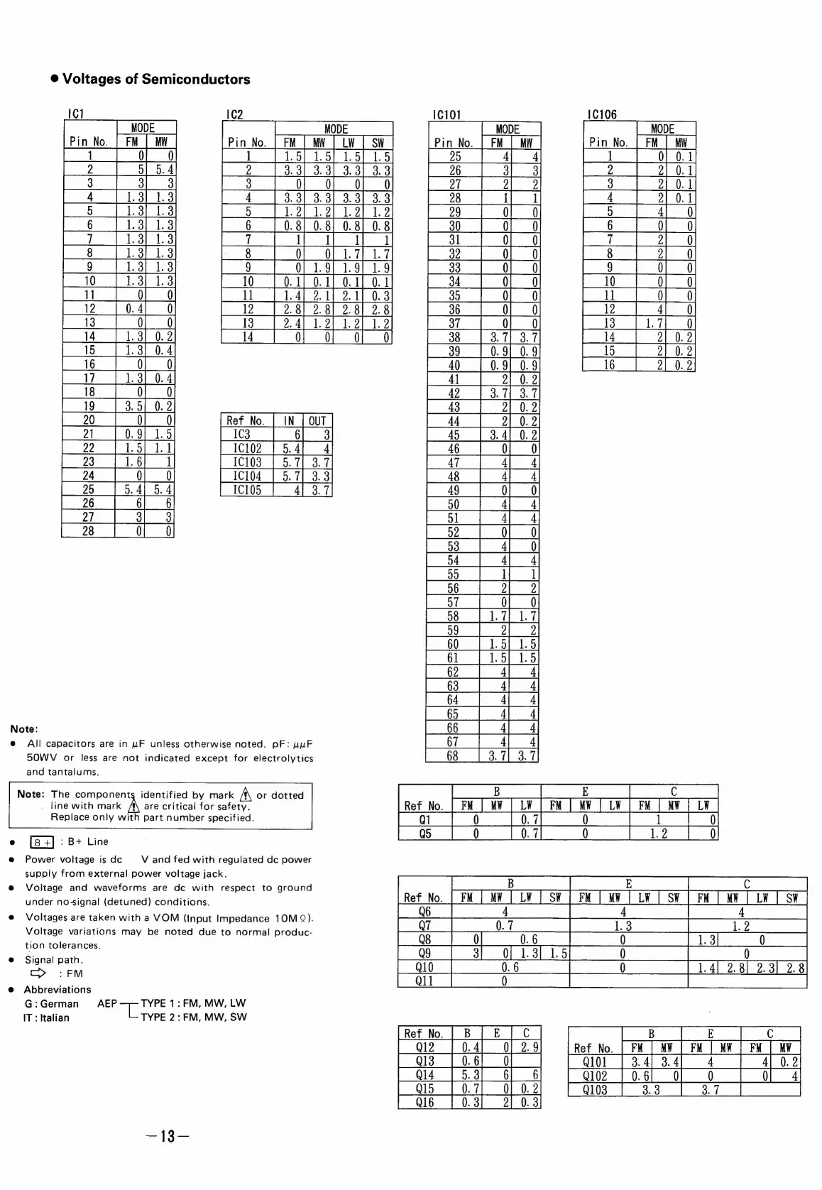 Sony IGF-M50RDS - Voltages of Semiconductors