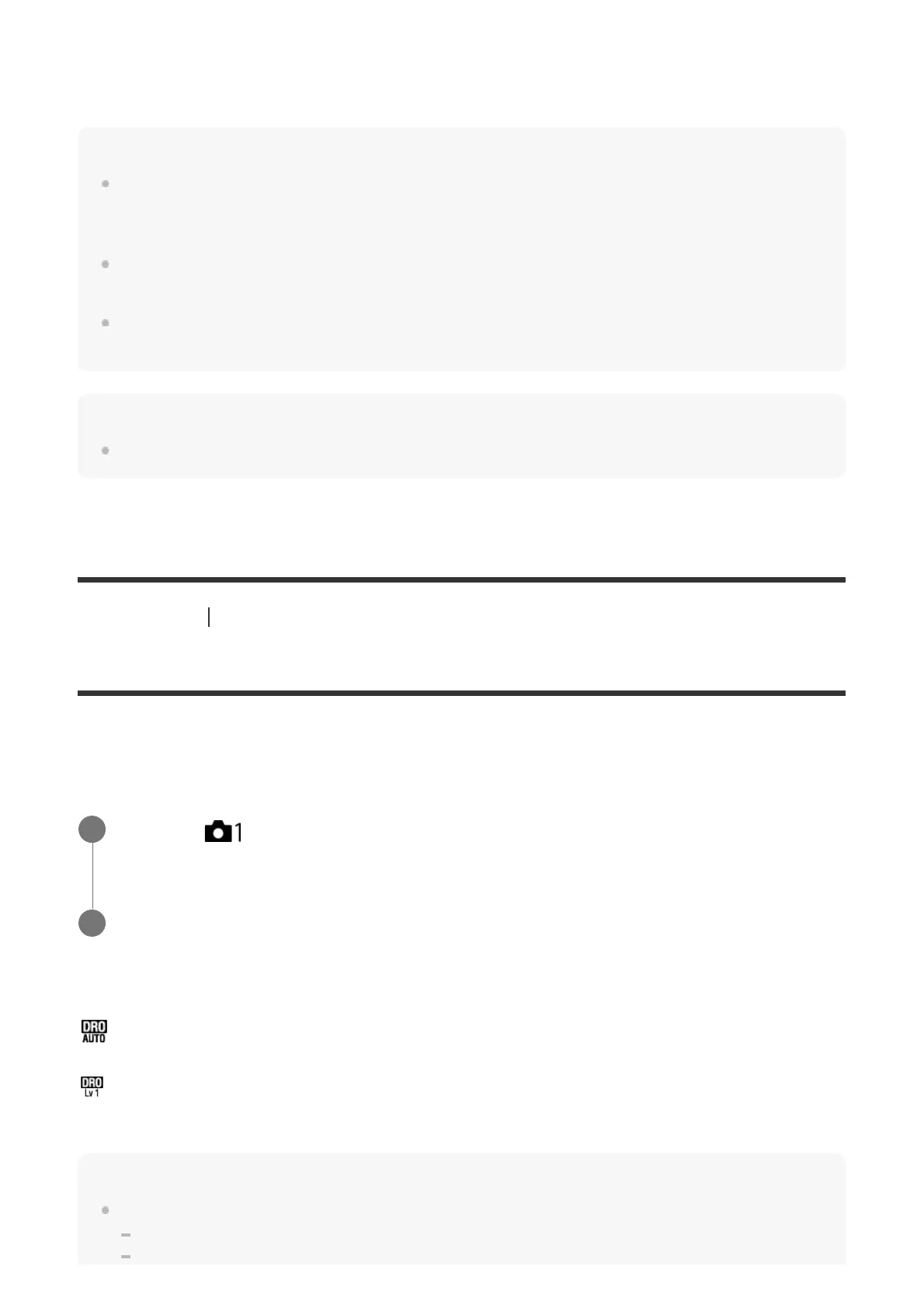 MENU → (Camera Settings1) → [DRO/Auto HDR] → [D-Range Opt.].