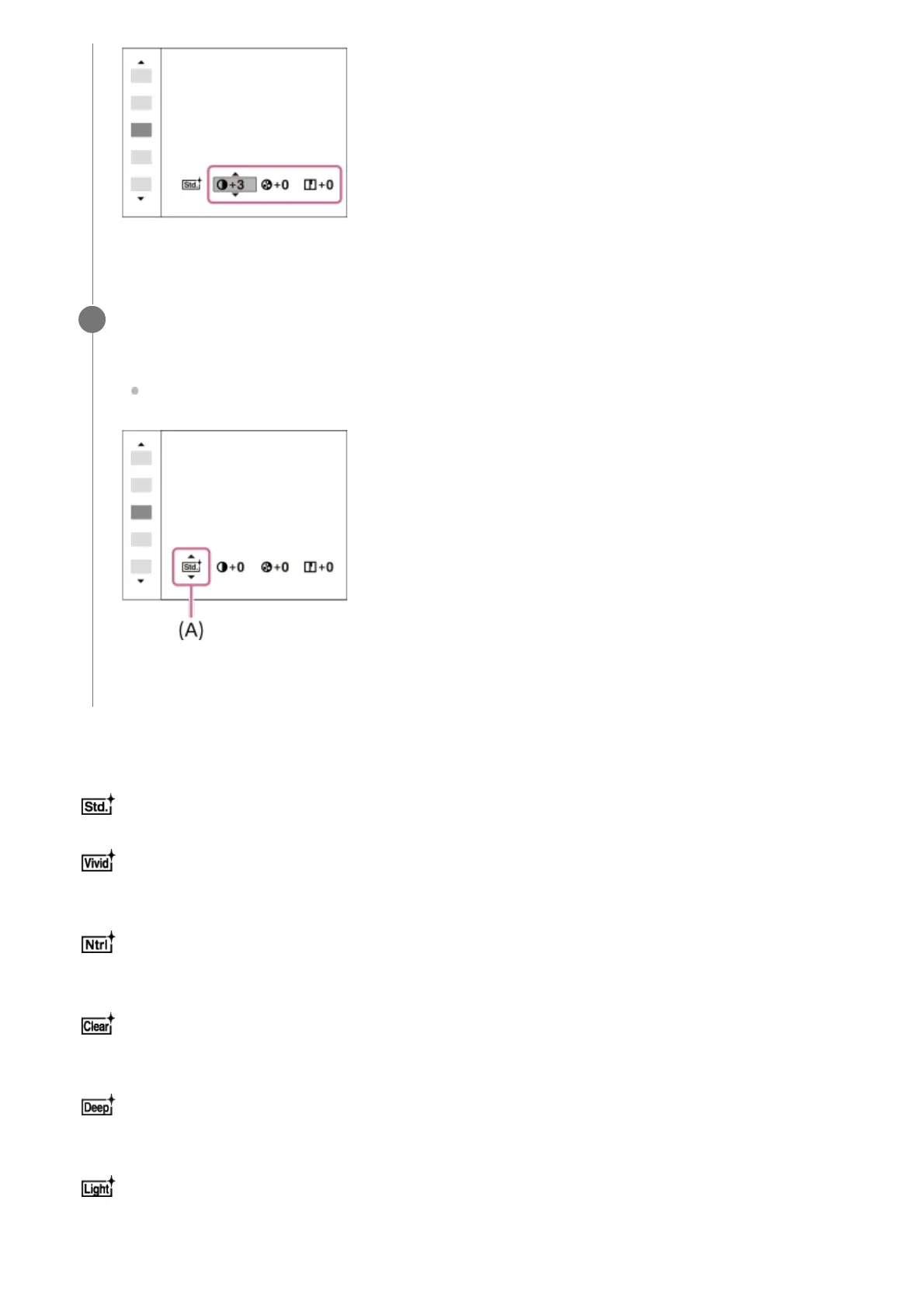 The saturation and sharpness are lowered for shooting images in subdued tones. This is also