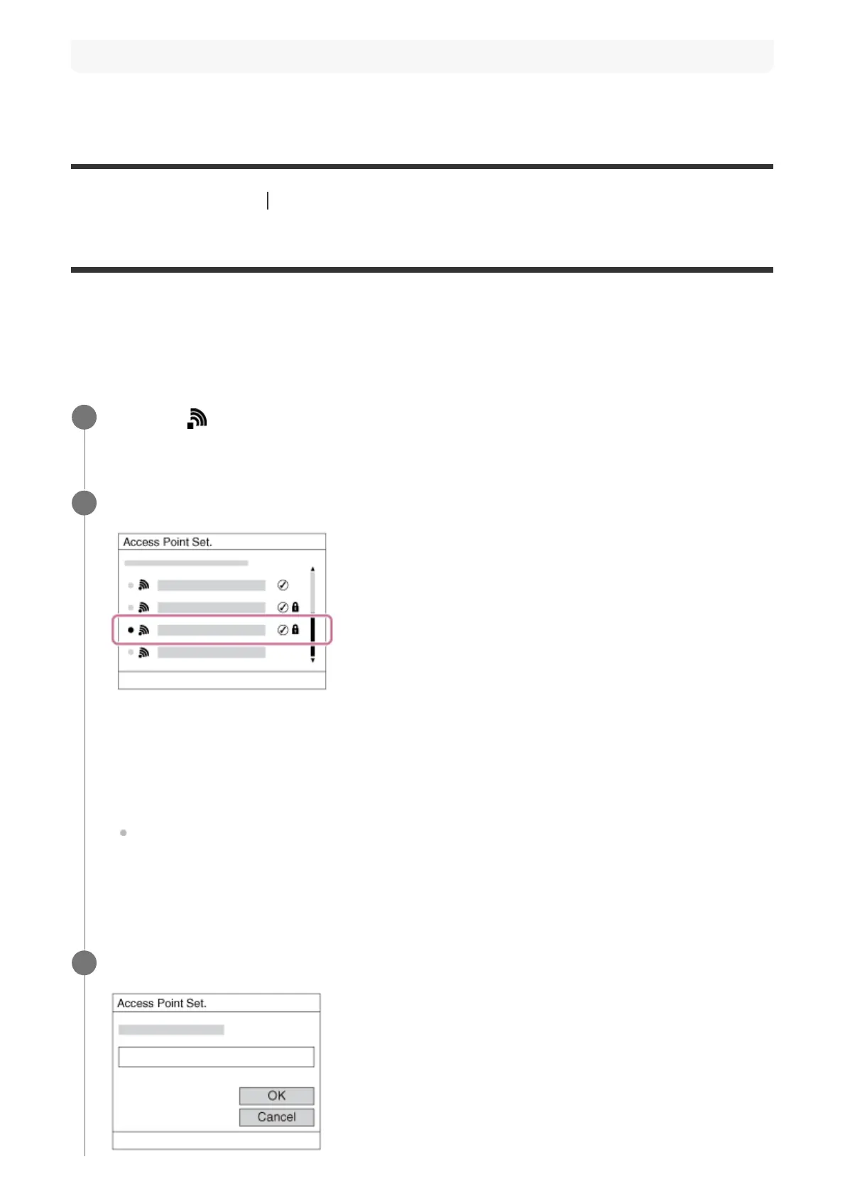 When the desired access point is not displayed on the screen: Select [Manual Setting]