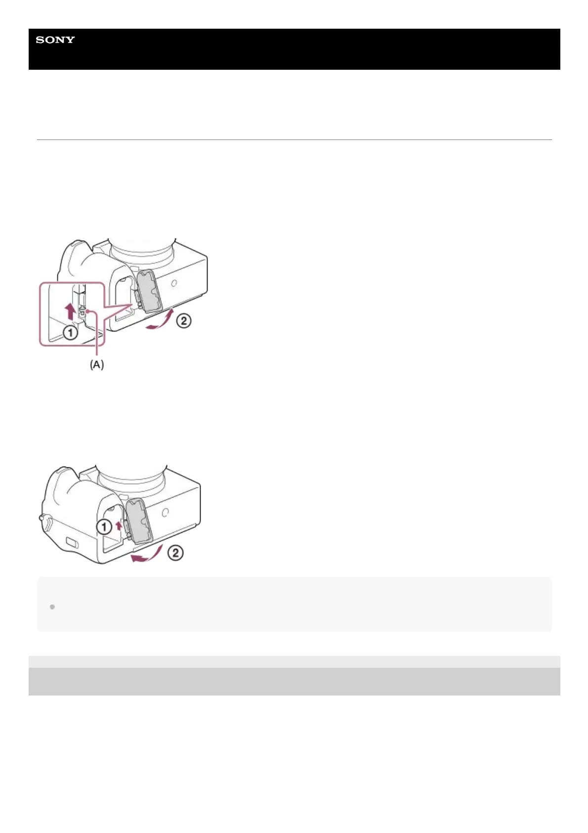 Pull the battery cover release lever (A) in the direction of the arrow, and then remove the battery cover.