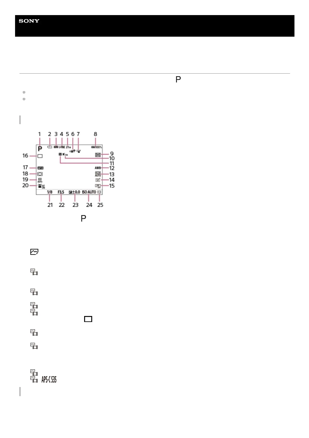 Displayed when [AF Illuminator] is set to [Auto] and the camera detects that the AF Illuminator is required10.