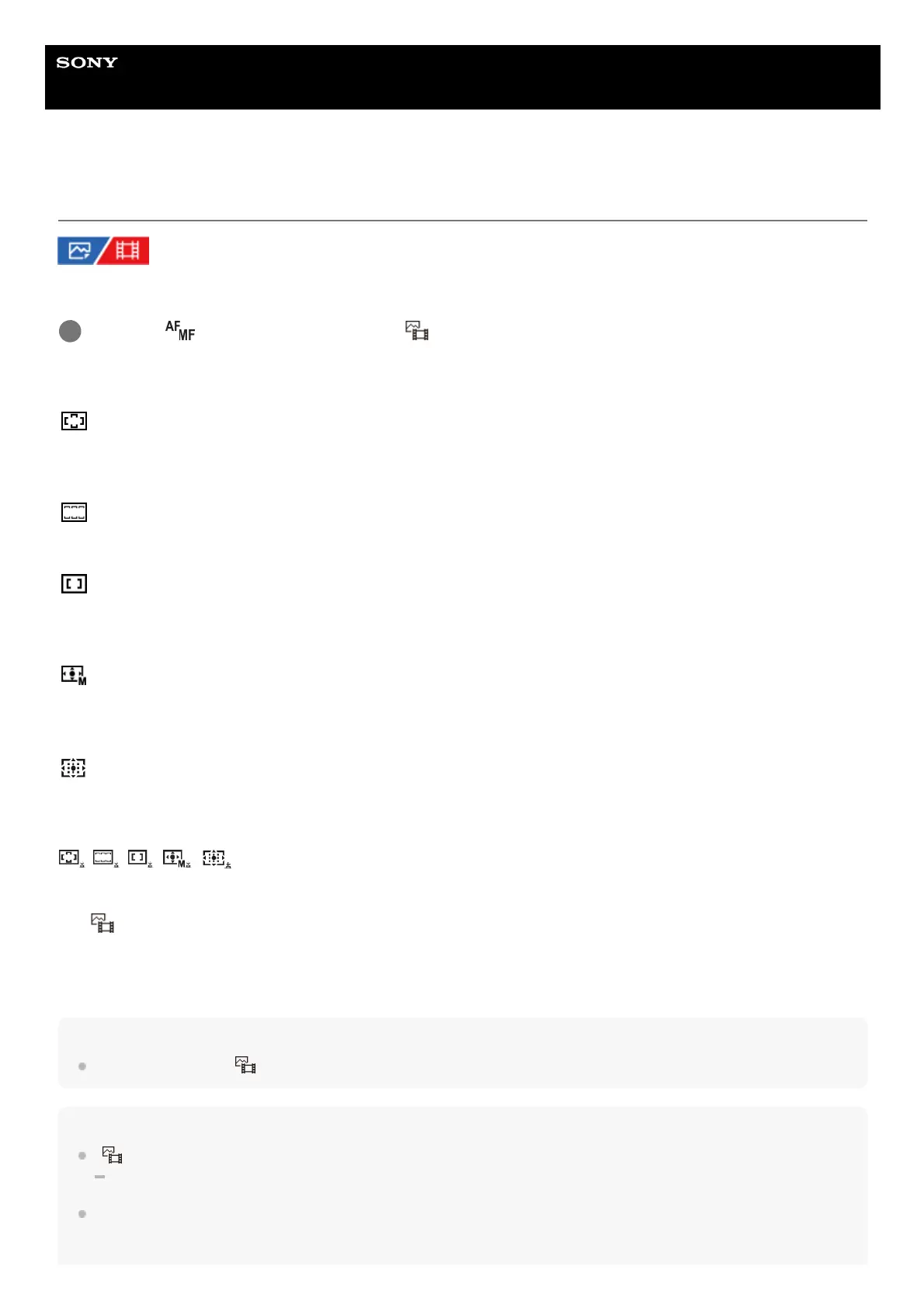 Set the type of focusing frame when shooting with the auto focus. Select the mode according to the subject.