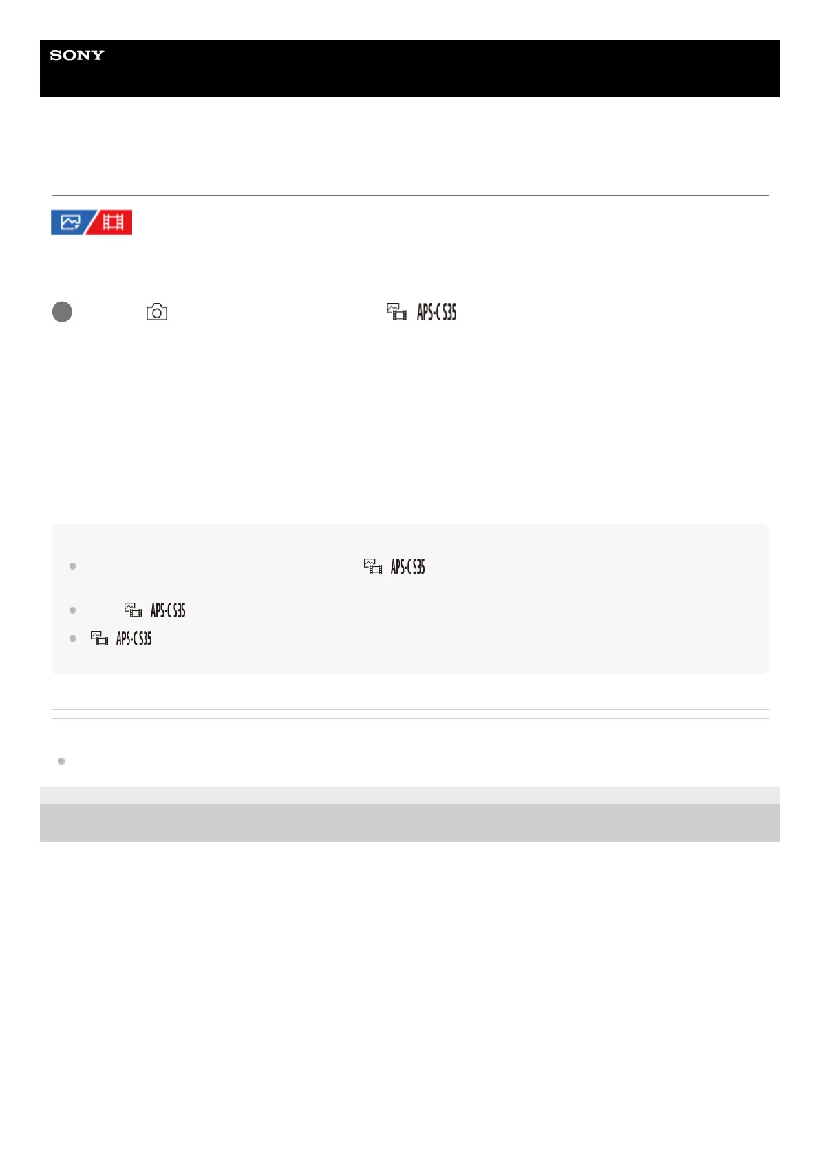Super 35mm for movies. If you select [On] or [Auto], you can use an APS-C size dedicated lens on this product.