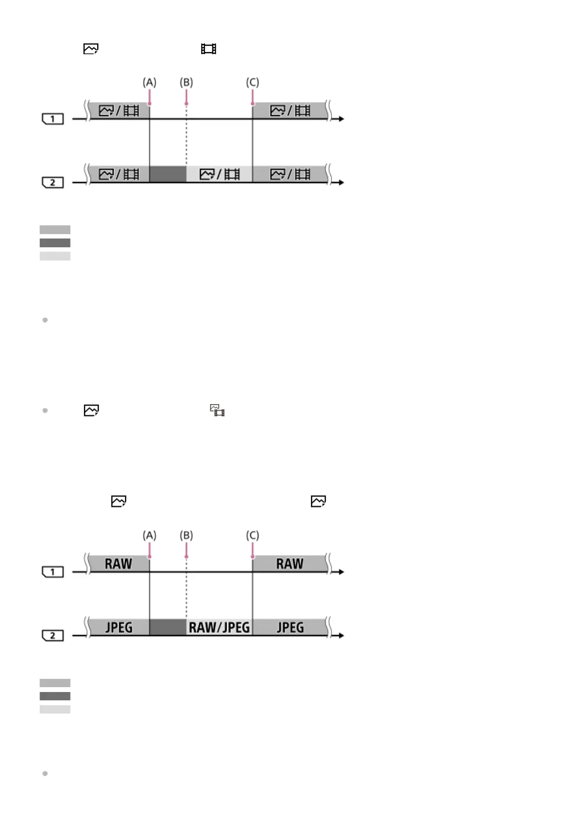 has become full, the camera starts recording both in the RAW and JPEG/HEIF formats to the other memory card.