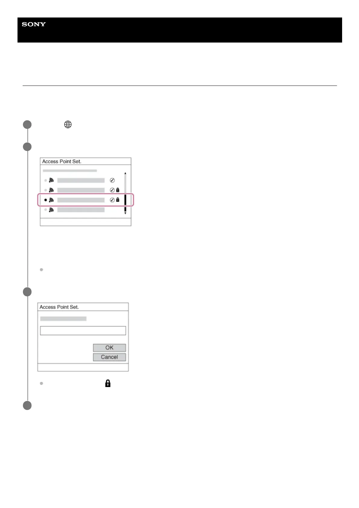 When the desired access point is not displayed on the screen: Select [Manual Setting] and set the access