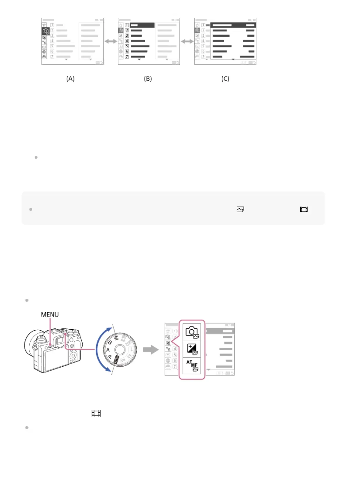 Since you can record movies with the MOVIE (Movie) button even in the still image shooting mode, some basic movie menu items are also