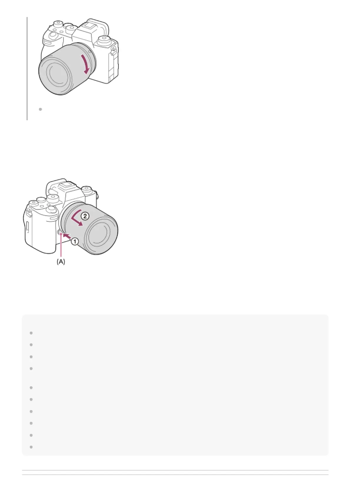 A Mount Adaptor (sold separately) is required to use an A-mount lens (sold separately). When using the Mount Adaptor, refer to
