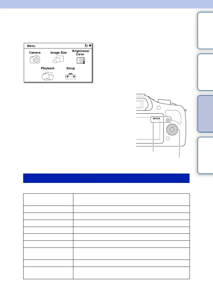 You can set up the basic settings for the camera as a whole, or execute functions such as
