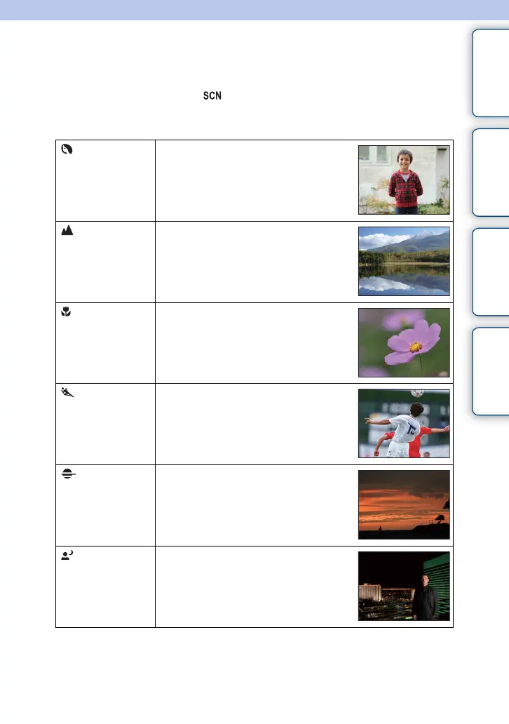 Allows you to shoot with preset settings according to the scene.