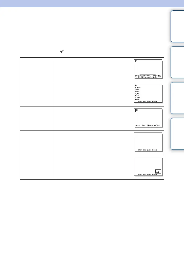 1 MENU t [Camera] t [DISP Button(Monitor)].