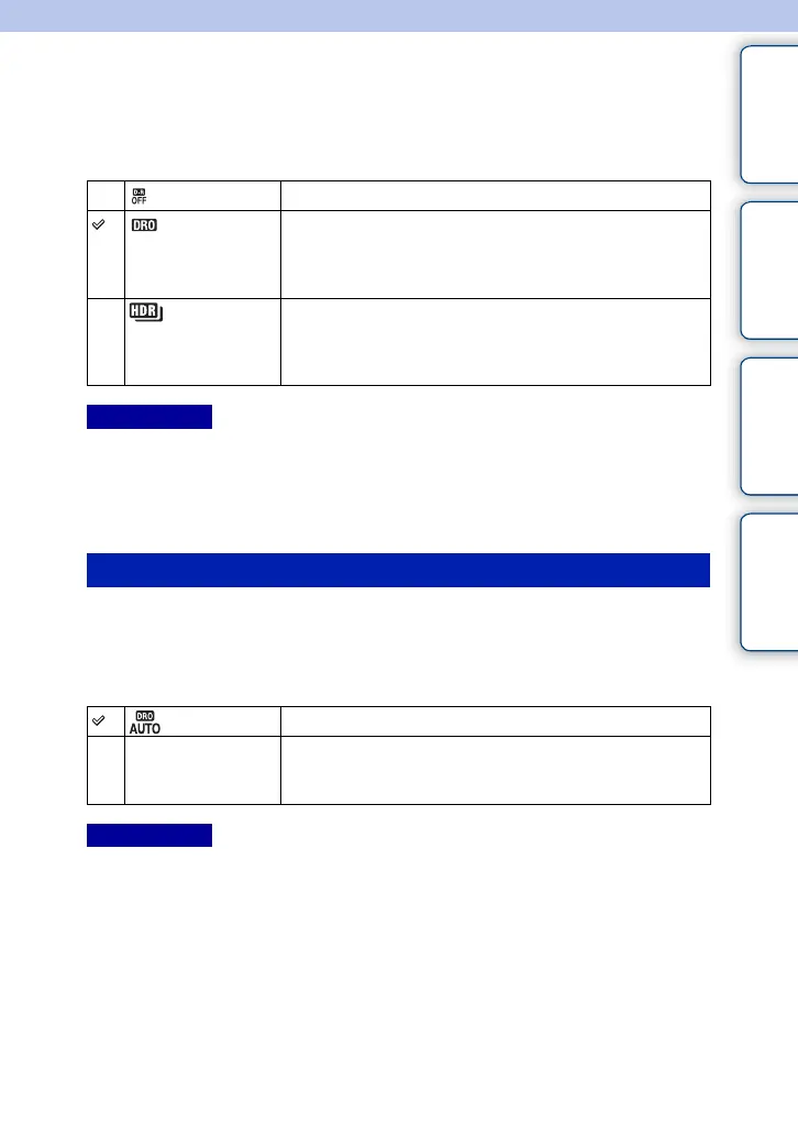 1 MENU t [Brightness/Color] t [DRO/Auto HDR] t desired mode.