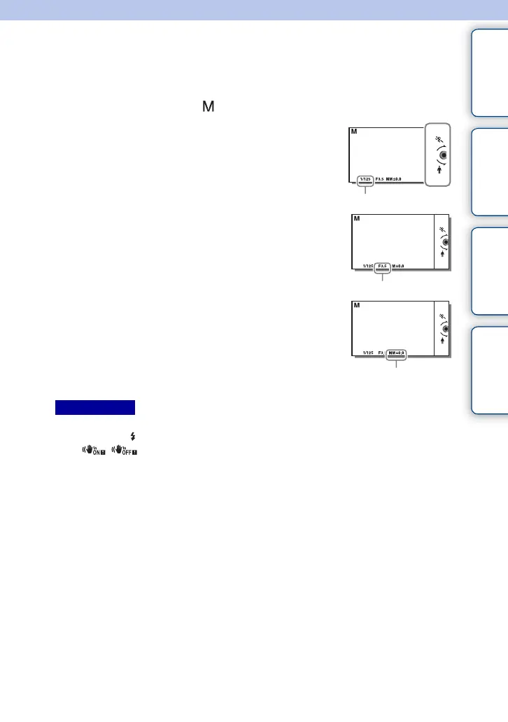 The (SteadyShot warning) indicator does not appear in manual exposure mode.