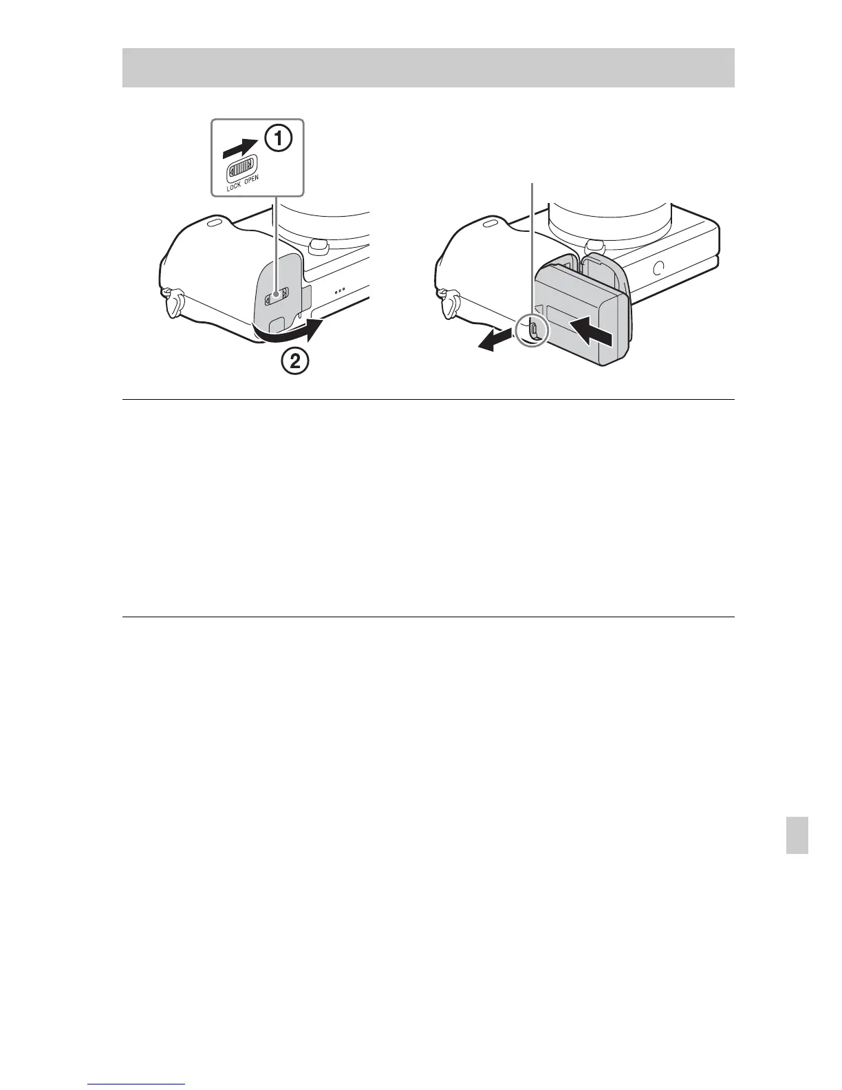 Samalla kun painat akun poistovipua, aseta akku paikalleen kuvan