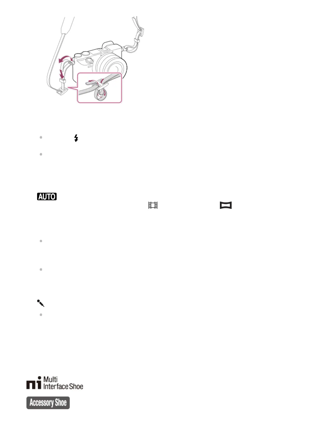 For details on compatible accessories for the multi interface shoe and the Multi/Micro USB Terminal, visit the