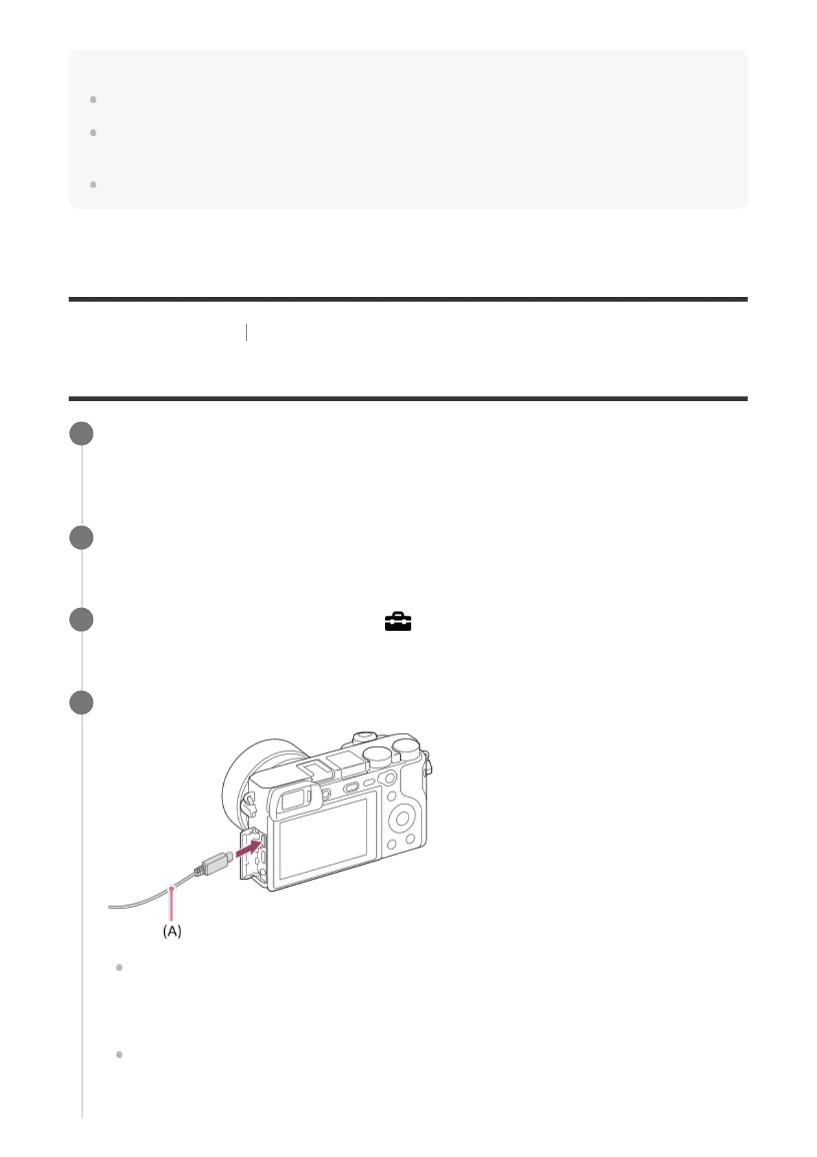Connect the camera to the computer using the micro USB cable (supplied) (A).