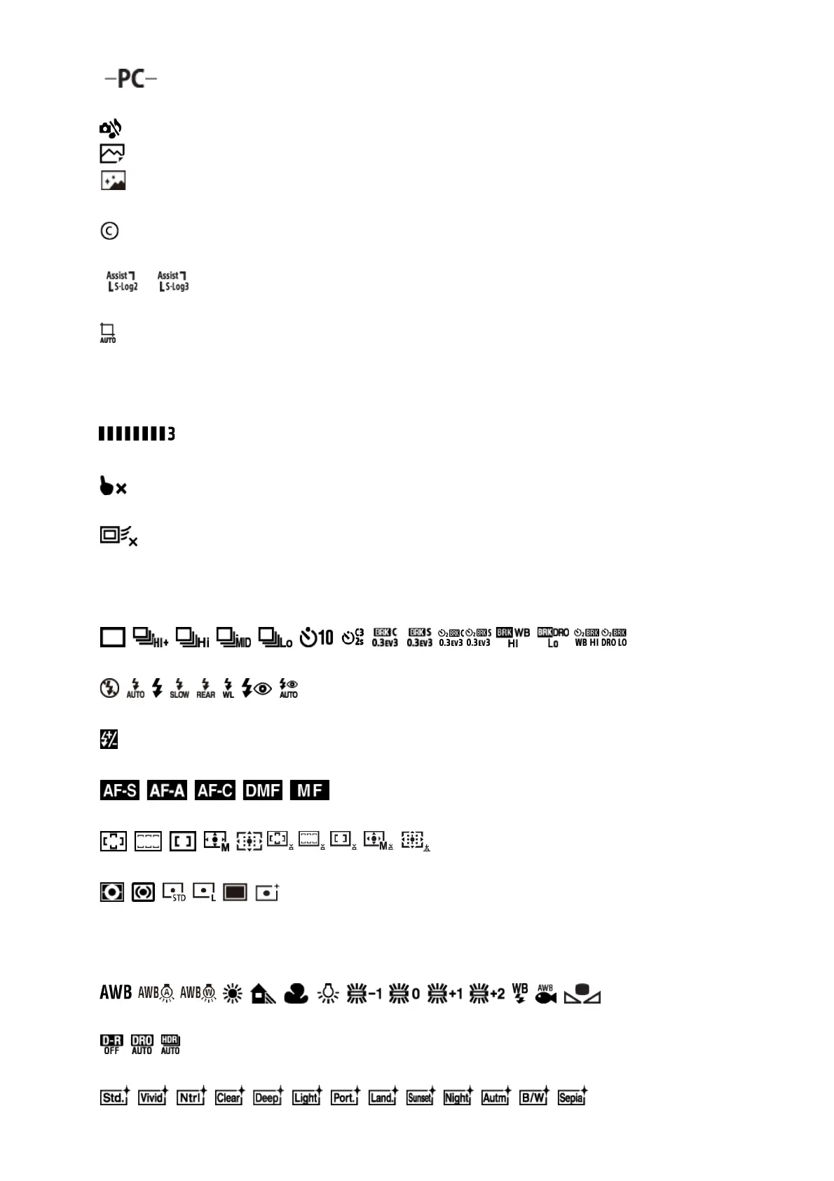 White Balance (Auto, Preset, Underwater Auto, Custom, Color temperature, Color filter)