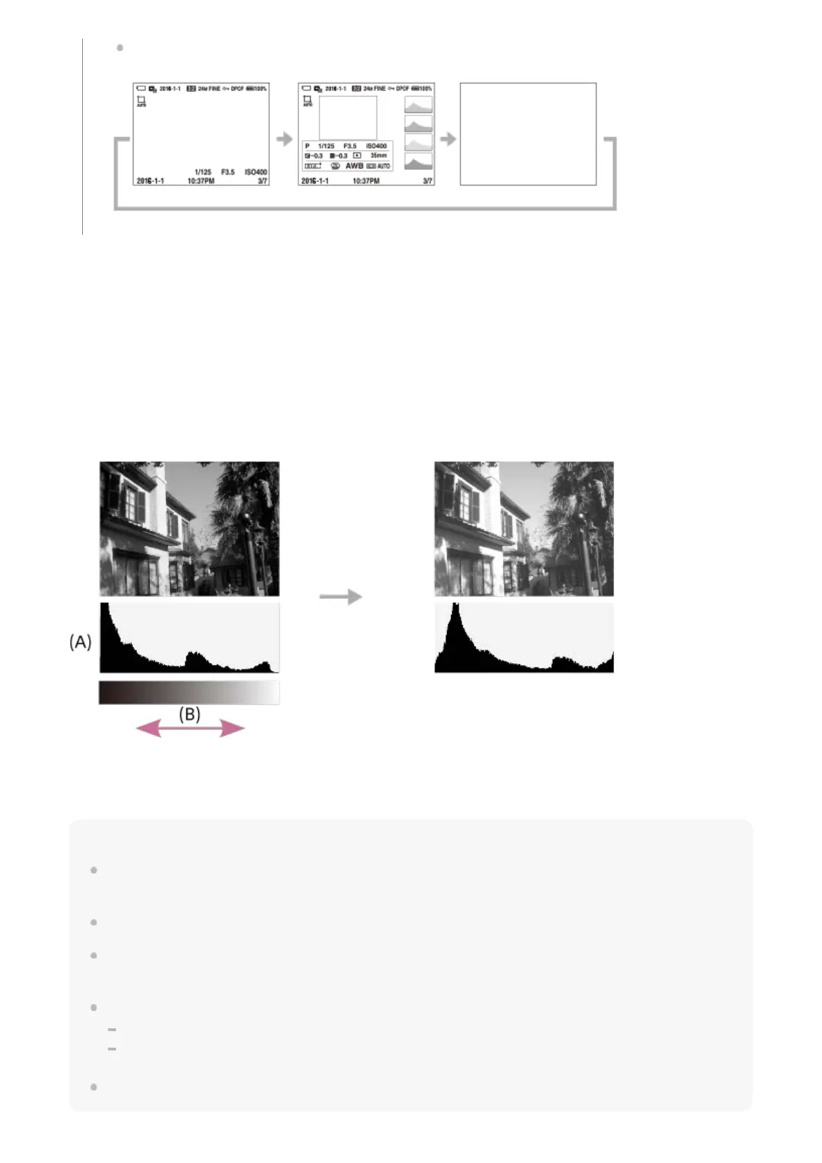 The viewfinder display and the monitor display for shooting can be set separately. Look through the