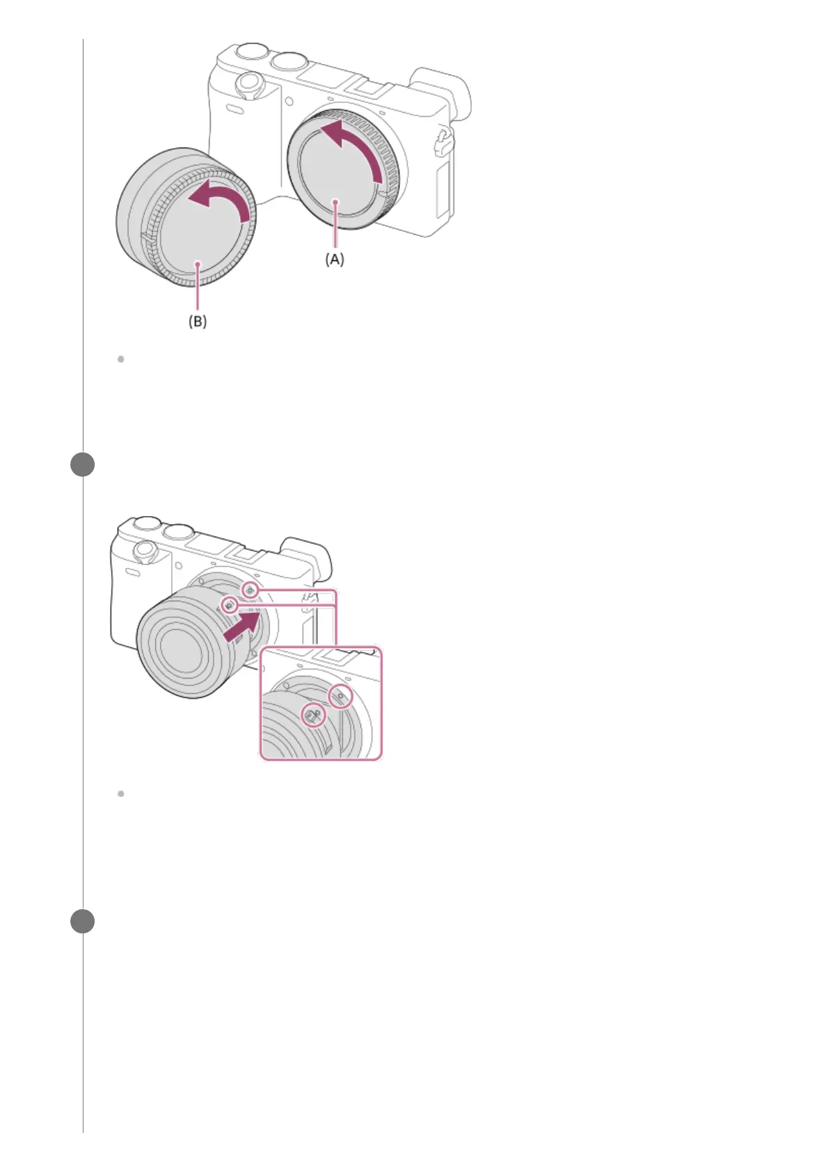 Mount the lens by aligning the two white index marks (mounting indexes) on the